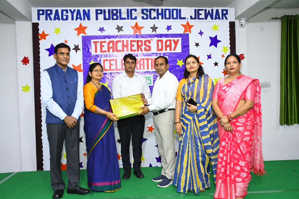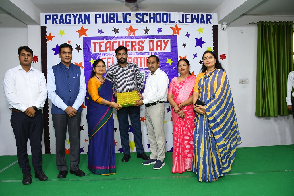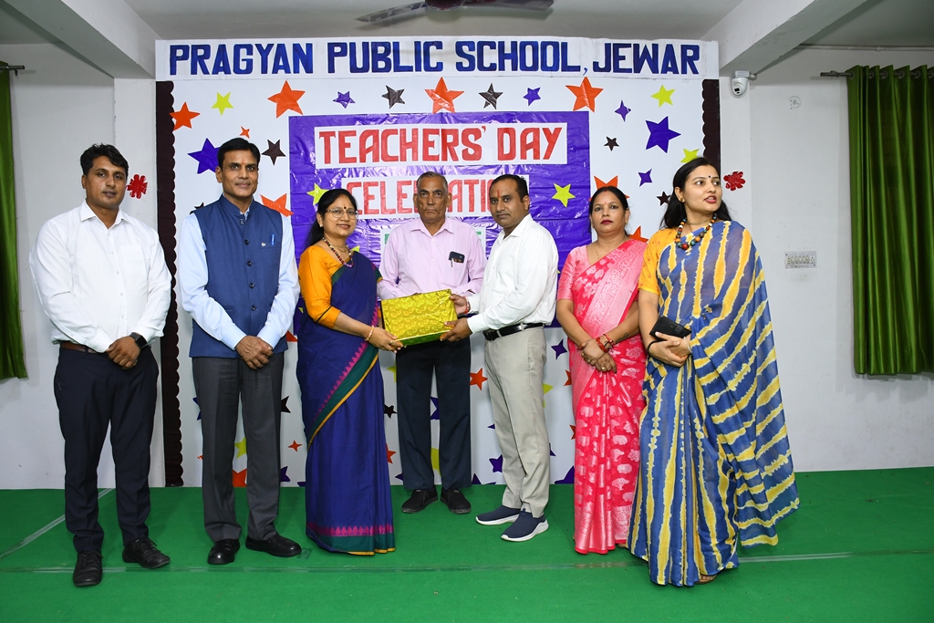 Description : On the eve of "Teachers' Day" the Honourable Manager Dr.Harish Kumar Sharma and the Principal Dr. Deepti Sharma honoured the teachers of Radha Krishan Academy for their tireless efforts in shaping the future of young learners. This gesture filled the atmosphere with pride and motivation.